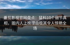 番茄影视官网盘点:猛料10个细节真相,圈内人上榜理由极其令人惊艳全场