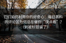 它们如何利用你的好奇心:每日黑料的评论区为何总在催你“快点看”?(别被标题骗了)