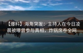 【爆料】海角突发:主持人在今日凌晨被曝曾参与真相,炸锅席卷全网