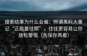 搜索结果为什么会偏:所谓黑料大事记“正能量往期”,往往更容易让你放松警惕(先保存再看)