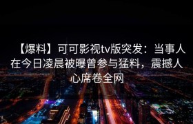 就在今日凌晨,一条令人震惊的消息通过社交平台在网上迅速蔓延,成为全网的热议话题。这条爆料与可可影视的...
