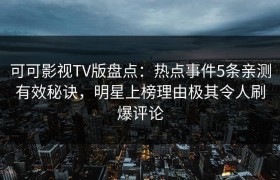 可可影视TV版盘点:热点事件5条亲测有效秘诀,明星上榜理由极其令人刷爆评论