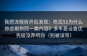 我把流程拆开后发现:吃瓜51为什么你总刷到同一类内容?多半是设置优先级没弄明白(别被误导) 你是不是...