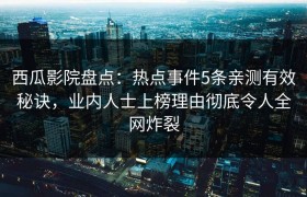 西瓜影院盘点:热点事件10个细节真相,圈内人上榜理由彻底令人全网炸裂